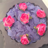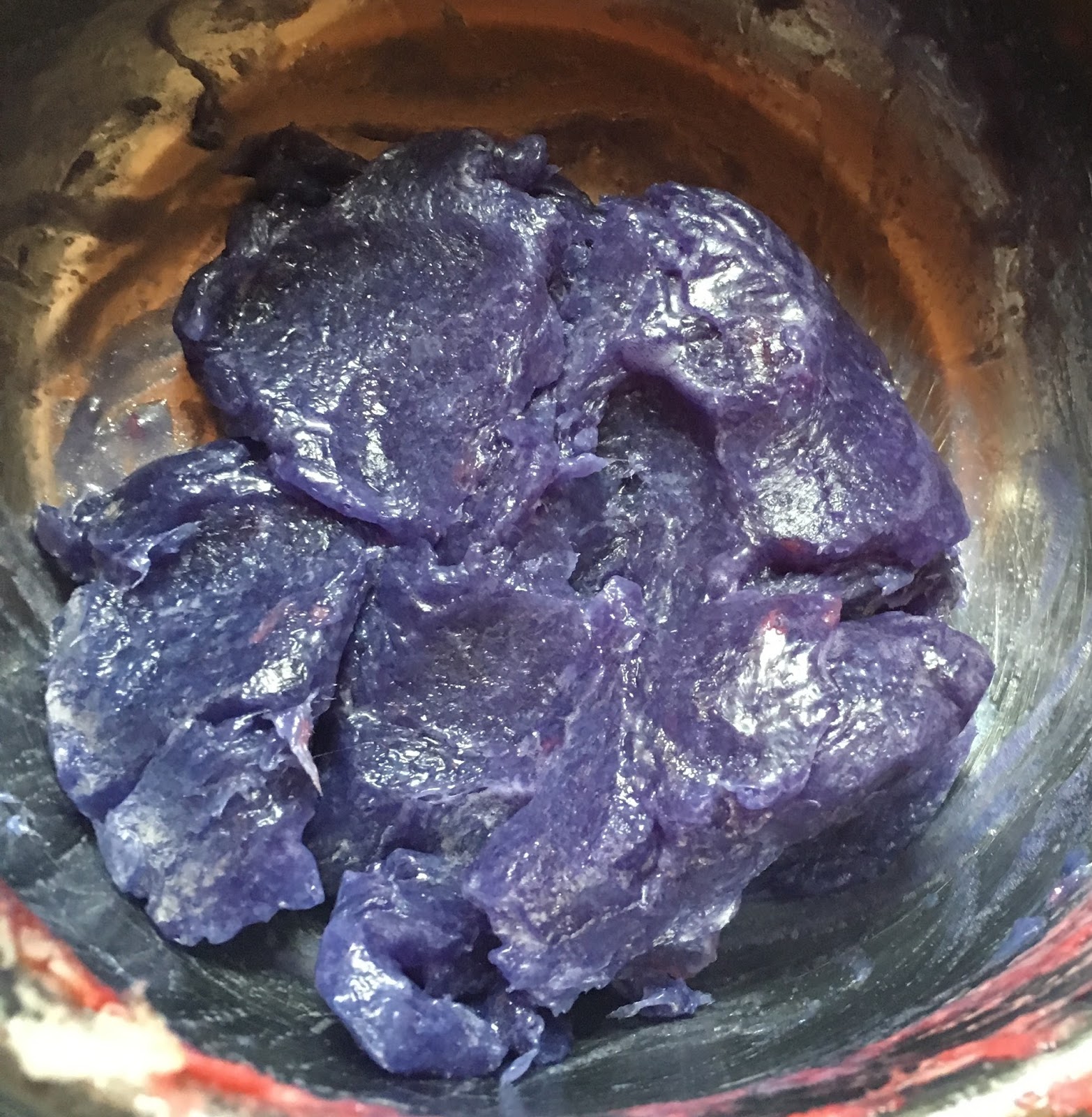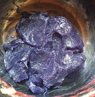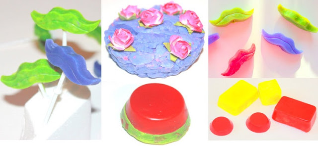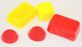 Mélange de savon, de glycérine et de colorant rouge et bleu |